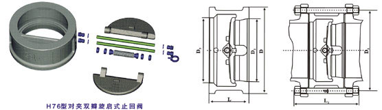 H76型对夹式双瓣旋启式止回阀 | H44型法兰单瓣旋启式止回阀 |