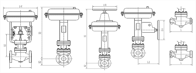 | 执行机构: | 气动:多弹簧执行机构 、单弹簧执行机构 |