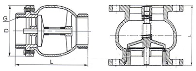 04、安装方式:常规水平安装,也可在阀瓣上加弹簧加强密封性能,此时可任意角度安装,但需要更大压力打开,介质的流向必须