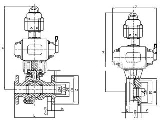 在气缸式执行机构侧面有二个M10×1(或G1/4″)的螺孔,可以通过连接板安装电磁换向阀,顶部也有二个M10×1的螺孔,可以通过支承件安装二个行程开关。中心旋转顶端可用扳手进行手动操作。